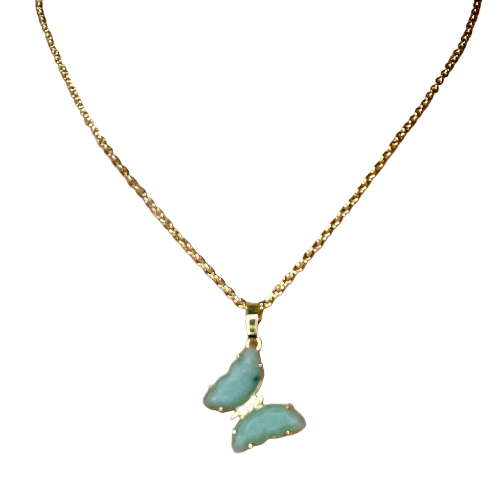 Natural Stone Butterfly Pendant Necklace & Ring